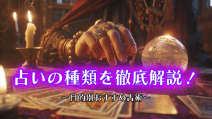 この記事では、その経験をもとに、代表的な占いの種類と特徴をわかりやすく解説しながら、恋愛・仕事・人生など目的別に、自分に合った占術を見つけるヒントをお届けします。